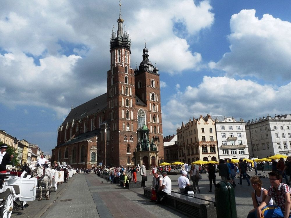 Am Freitag war ein Rundgang durch Krakau geplant, begleitet und unterwegs kommentiert von unserer sehr kompetenten Führerin Frau Margarete Kieres, die uns nicht nur durch ihr großes Wissen über die Geschichte dieser Stadt diesen Ort näher brachte. Wir starteten im Stadtteil Kazimierz, wo auch heute wieder etwa 2.000 Juden leben (1933 waren es etwa 70.000 jüdische Bewohner). Alle sieben Synagogen blieben erhalten, damit gibt es auch heute noch drei verschiedenen Gemeinden: die größte ist die Gemeinde der orthodoxen Juden, die Reform-Gruppe wird von einem weiblichen Rabbiner geführt. Die älteste Synagoge ist heute ein Museum. Für Freunde von Klezmer-Musik – eine alte jiddische Musik – ist es eigentlich ein Muß, abends auf dem Hauptplatz zu essen – begleitet von Klezmer-Musikanten. - Der Vormittag endete in der Marienkirche, wo um 11.55 Uhr der 1777 von Veit Stoß geschaffene Klapp-Altar (der größte in der Welt) geöffnet wurde in Anwesenheit sehr vieler Reise- und Jugendgruppen. Die 300 Figuren beeindrucken durch ihre Bemalung und stellen die Legende von Maria dar. Im Krieg wurde der Altar ausgelagert (in Nürnberg) und kam nach vielen Querelen - leider mit großen Schäden – erst 1957 zurück. Ein Magnet nicht nur für die Touristen. Pünktlich um 12.00 Uhr bläst jeden Tag der Turmbläser (ein Feuerwehrmann) vom Kirchturm den „Herow“ (ein alter Weckruf für Soldaten, der täglich von allen Rundfunksendern verbreitet wird) in alle vier Himmelsrichtungen an je vier Fenstern. Nach dem gemeinsamen Mittagessen in einem landestypischen Lokal war es den Reisemitgliedern überlassen, wie sie den Nachmittag verbringen wollten.