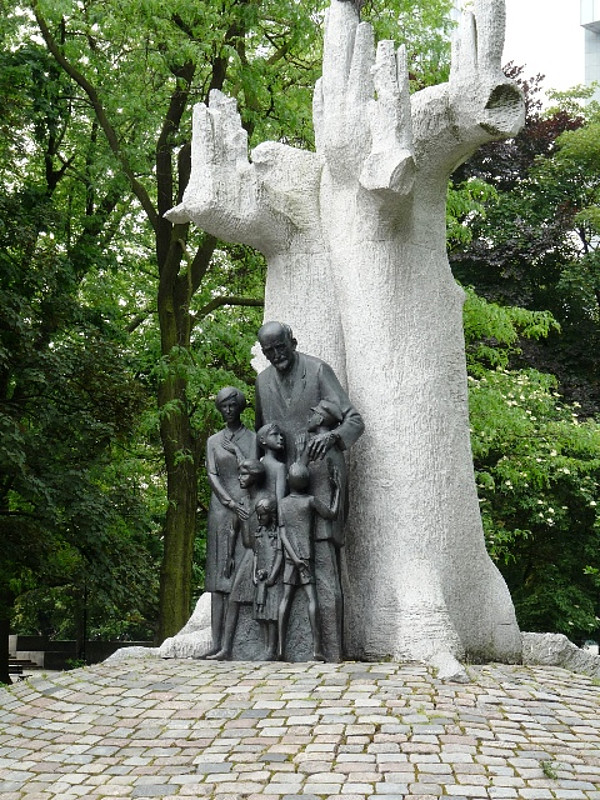 Der nächste Tag sollte mit dem Besuch einer alten Synagoge beginnen, der einzigen in Warschau, die im Krieg nicht zerstört wurde. Trotz einer bestätigten Anmeldung gegenüber der Führerin konnten wir das Gebäude leider nicht betreten – es war ein Tag des Betens angesetzt. Schade! Wir gingen etwas frustriert wegen der Absage zur letzten erhaltenen Ghetto-Straße ( 1940 wurde das Ghetto von den Deutschen eingerichtet) mit einem original erhaltenen Haus – nicht mehr bewohnbar; in den leeren Fensterhöhlen hatte man große Bilder früherer Bewohner befestigt. Dieser Teil der Stadt, (ca. 300 ha) war mit einer 3 m hohen Mauer umgeben und hatte 22 streng bewachte Eingangstore. Vor diesem Gebäude stehend erklärte uns nun die Führerin sehr engagiert und überzeugend der Situation der etwa 350.000 Ghetto-Bewohner – und man hielt einfach nur den Atem an! Ab Sommer 1942 begannen die Abtransporte nach Treblinka. Die Geschichte dieser grauenhaften Zeit wurde in 35.000 Dokumenten von den Ghetto-Bewohnern festgehalten, die den Krieg wunderbarerweise überstanden. Das sog. Ringelblum-Archiv (genannt nach seinem Initiator) ist inzwischen zum UNESCO-Weltkulturerbe erklärt.