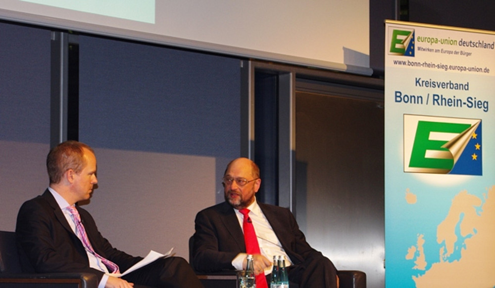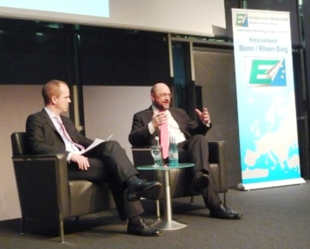Auf Einladung der Europäischen Akademie Nordrhein-Westfalen und des Kreisverbandes Bonn / Rhein-Sieg der Europa-Union sprach am 17.01.2014 der Präsident des Europäischen Parlaments, Martin Schulz, im Bonn Posttower zum Thema „Europa vor der Wahl – quo vadis EU?“
