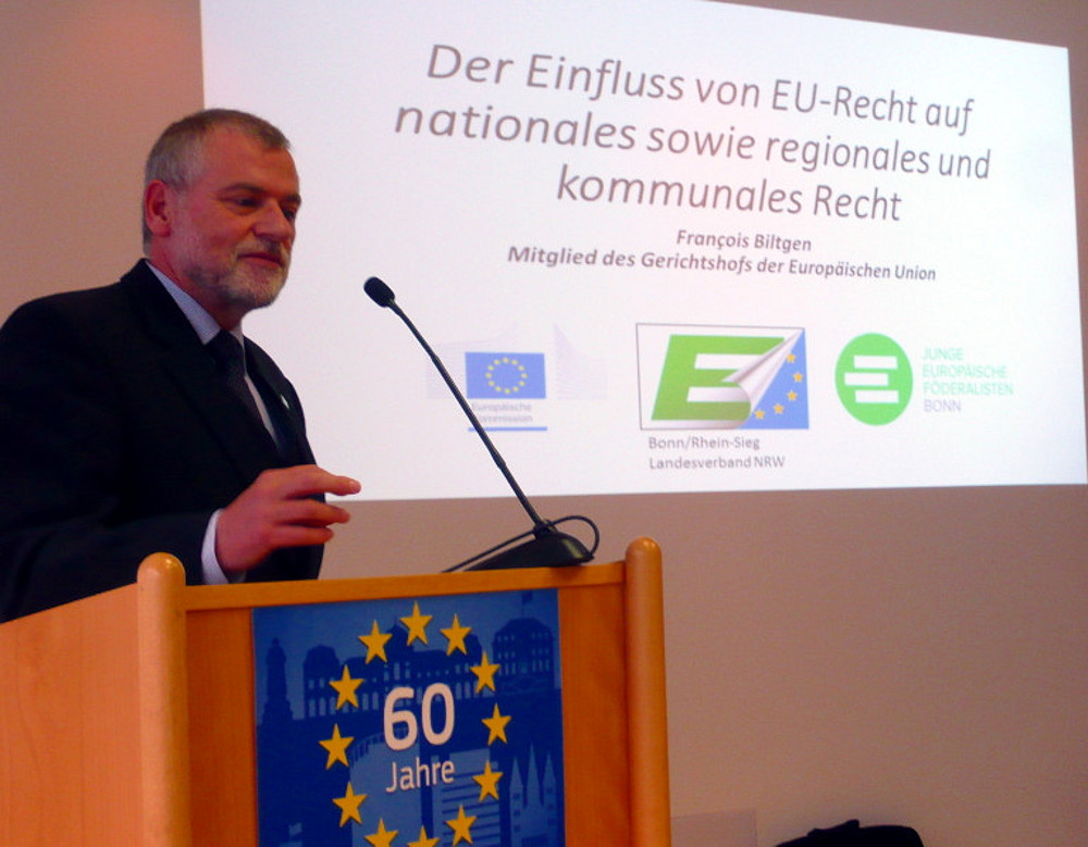 Am 25. November 2016 sprach Richter François Biltgen in Bonn zum Thema: "Der Einfluss von EU-Recht auf nationales sowie regionales und kommunales Recht" in der Regionalen Vertretung der Europäischen Kommission in Bonn.