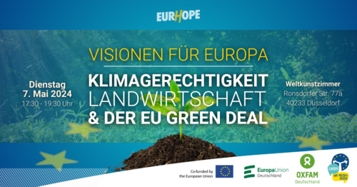 Kommen Sie vorbei zu unserem nächsten Bürgerdialog am 7. Mai 2024 in Düsseldorf! Diskutieren Sie von 17:30 Uhr bis 19:30 Uhr im Weltkunstzimmer Düsseldorf gemeinsam mit Expert*innen aus Politik und Wissenschaft über Klimagerechtigkeit, die europäische Landwirtschaftspolitik und den EU Green Deal. » weiterlesen