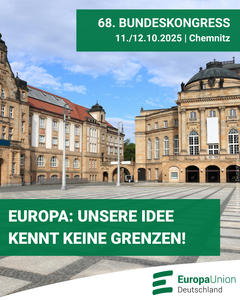 „Unsere Idee kennt keine Grenzen“ – so lautet das Motto des 68. Bundeskongresses am 11./12. Oktober in Chemnitz, bei dem die Europa-Union Sachsen zugleich ihr 10-jähriges Jubiläum feiert. Das Kongressmotto spielt nicht nur auf die Aufhebung der Kontrollen an unseren Binnengrenzen an, sondern auch auf das Überwinden von Denkblockaden, schreibt EUD-Generalsekretär Christian Moos im Leitartikel unseres Mitgliedermagazins. „Europa verfügt über enorme Potenziale. […] Entweder wagt Europa den Sprung zu mehr Integration, oder es riskiert den… » weiterlesen
