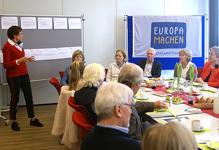 Mit diesem Gespräch startete die EUD-Steinfurt ihre Gesprächsreihe „Europa am Küchentisch“, die in den kommenden Wochen in den kleineren Gemeinden des weitläufigen Landkreises mit über 400.000 Einwohnern stattfinden wird. Wie Bernd Weber, der stellvertretende Vorsitzende im EUD-Kreisverband Steinfurt und zugleich Mitglied im Landesvorstand berichtete, wird an dem folgenden Gespräch in der Gemeinde Metelen auch die frühere NRW-Europaministerin Dr. Angelica Schwall-Düren teilnehmen. In den Gesprächen am Küchentisch will der EUD-Kreisverband Steinfurt Kritik und Anregungen der Bürgerinnen und Bürger für die Zukunft Europas aufnehmen und sie den Kandidaten für die Europawahl als Wahlprüfsteine vorlegen. Die Konzeption der Gesprächsreihe und die Auswertung des ersten Gespräches mit 23 Gästen kann unter der Mail-Adresse weberber@t-online.de angefordert werden.