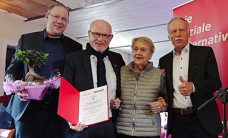„Manfred Klein ist ein Leuchtturm der Orientierung“, schwärmte Anhut über den agilen Parteigenossen, dem seine 75 Jahre nicht anzumerken sind. Er sei ein großes Gegengewicht zu den vielen Egomanen in Politik und Gesellschaft, die heute die Schlagzeilen der Zeitungen und die sozialen Netzwerke füllten. Mit seinem Engagement in der Europa-Union steure Klein gegen diese Haltung, werbe für Menschlichkeit und bringe jegliche Information sachlich und verständlich rüber, so Anhut weiter.