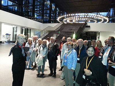 Danach ging es in den Plenarsaal der Großen Kammer, wo eine Klage des Europäischen Parlaments gegen ein Abkommen des EU-Ministerrats mit Tansania verhandelt wurde. Gegenstand des Abkommens sind die Bedingungen für die Überstellung mutmaßlicher Seeräuber und die Übergabe der damit in Verbindung stehenden Güter, die von der EU-geführten Seestreitkraft beschlagnahmt wurden, an Tansania. Tiefen Eindruck hinterließ der Einzug der 15 Richter in ihren roten Roben. Der Vertreter der britischen Regierung, die sich an dem Verfahren beteiligte, erschien mit der traditionellen Perücke. Eine Entscheidung erging am Ende der Sitzung nicht. In einem weiteren Termin wird vielmehr der Generalanwalt sein Plädoyer halten, bevor die Kammer über das Urteil berät. Dass Luxemburg zusammen mit Brüssel und Straßburg eine der drei Europa-Hauptstädte ist, wurde bei der anschließenden Fahrt über das Kirchbergplateau klar. Auf nur vier Quadratkilometern gibt es zahlreiche europäische Einrichtungen, z.B. das Statistische Amt der EU, den Europäischen Rechnungshof, die Europäische Investitionsbank sowie die Rats- und Parlamentsgebäude. Diese Institutionen haben alle mit den Nachrichten zu tun, die uns täglich erreichen. Weiter ging es über die Hochbrücke hinüber zu dem Felsen, auf dem die Altstadt von Luxemburg liegt. Von der Brücke aus konnte die filigrane Struktur der luxemburgischen Philharmonie bestaunt werden, die 1.500 Zuhörern Kultur mit Weltklasseniveau bietet, obwohl die Stadt selber nur gut 110.000 Einwohner hat. Den Abschluss bildete ein Rundgang durch die Altstadt, bei der das Großherzogliche Schloss, der Bockfelsen, auf dem Luxemburg im Jahre 963 seinen Ursprung nahm, die Kathedrale, große Plätze und kleine Gassen besucht wurden. "Allein hätten wir niemals so viele Eindrücke an einem Tag erhalten können", äußerten die Teilnehmer zufrieden. "Die Exkursion steht in einer Reihe von Bildungsfahrten mit europäischem Bezug", erläuterte Gisela Steinborn, Vorstandsmitglied der Europa-Union. Im Juni ging es zum geografischen Mittelpunkt Europas. Für das kommende Jahr stehen die Themen europäische Wasserstraßen und das europäische Finanzwesen auf dem Programm.