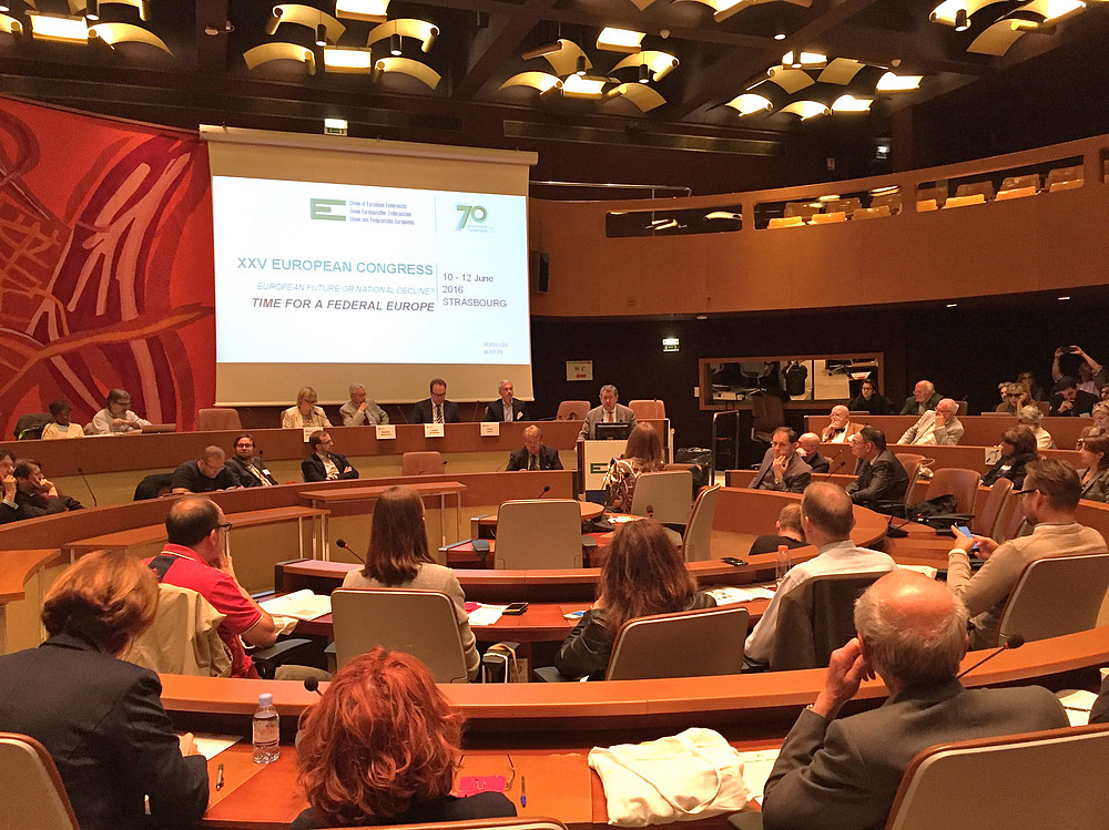 Beim Straßburger Europakongress feierten mehr als 200 Delegierte und Gäste das 70jährige Bestehen der europäischen föderalistischen Bewegung, zogen Bilanz und formulierten ihre Ziele für die Zukunft. Das 70jährige Jubiläum der UEF wurde mit zahlreichen Rückblenden auf die Verbandsgeschichte und historische Meilensteine der föderalistischen Bewegung begangen. Im Vordergrund des Kongresses stand aber die Frage, wie es mit der Europäischen Einigung weitergehen soll.
